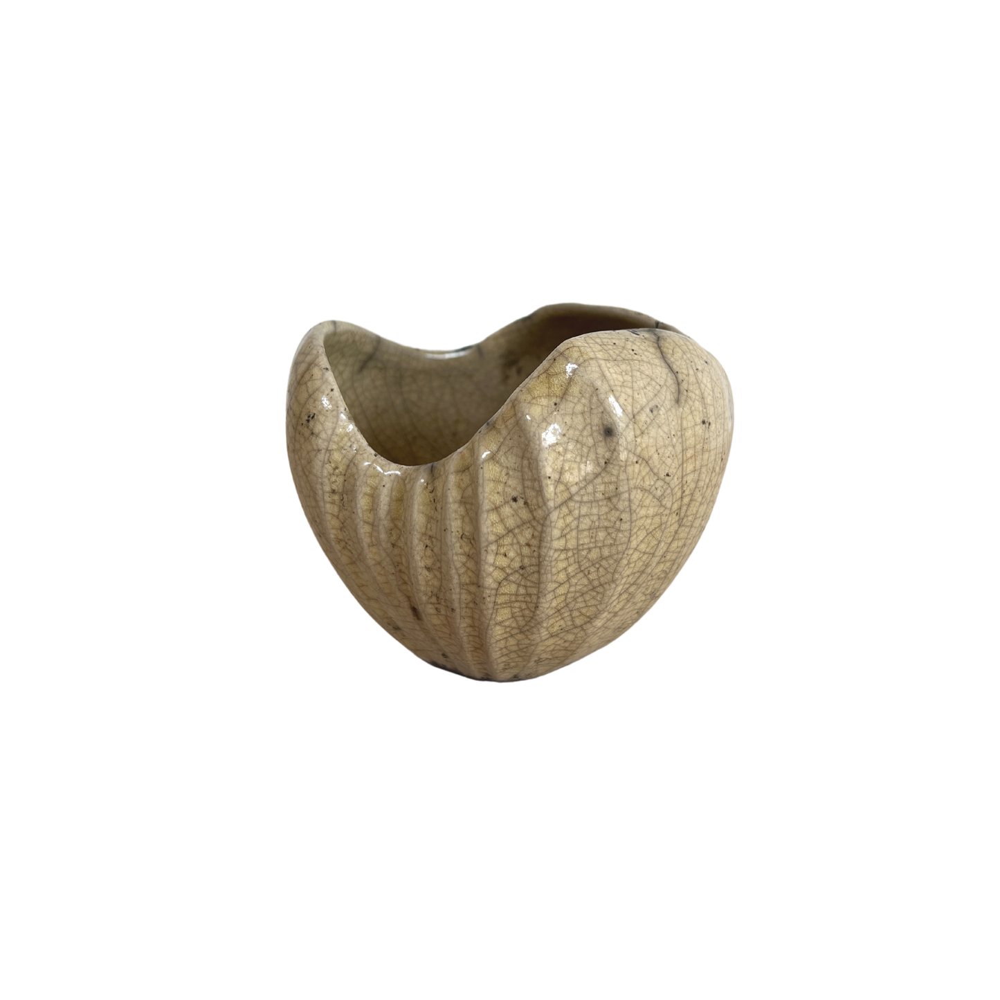 Skulpterad ljusstake i keramik, handgjord av Eva Paradis med karvad yta och organiska former.