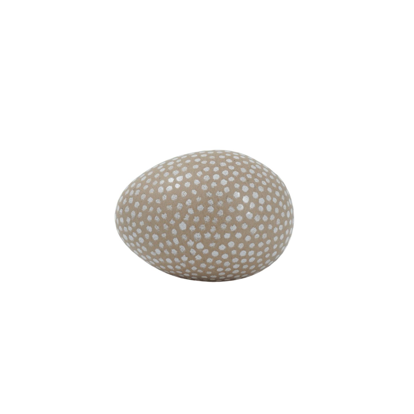 Ägg i keramik med Mocca som basfärg och vita prickar