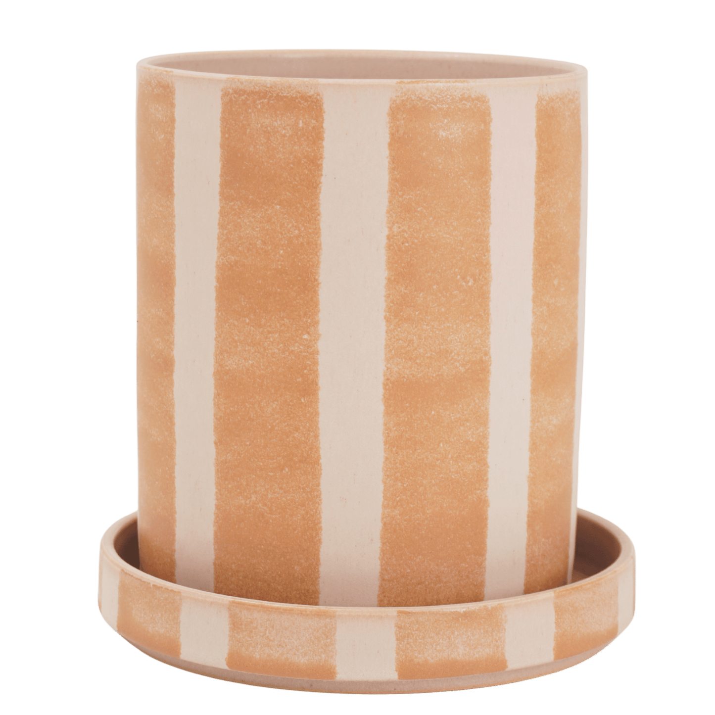 Breitgestreifter Topf mit Untertasse - Mittel