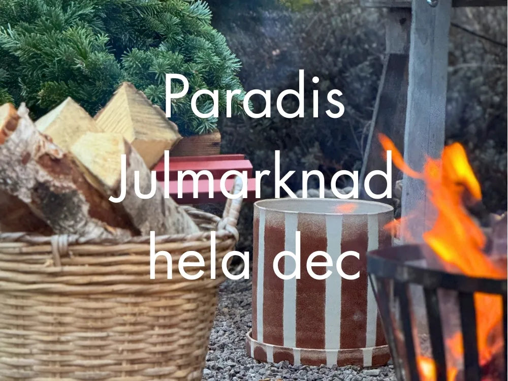 Under december förvandlas Paradisverkstaden till en extra stämningsfull julvärld fylld av form, doft och inspiration. Här möts vackra juldukningar, handplockad inredning, kransar, julgranar och säsongens gröna favoriter - allt i harmoni med Paradis egen keramik.