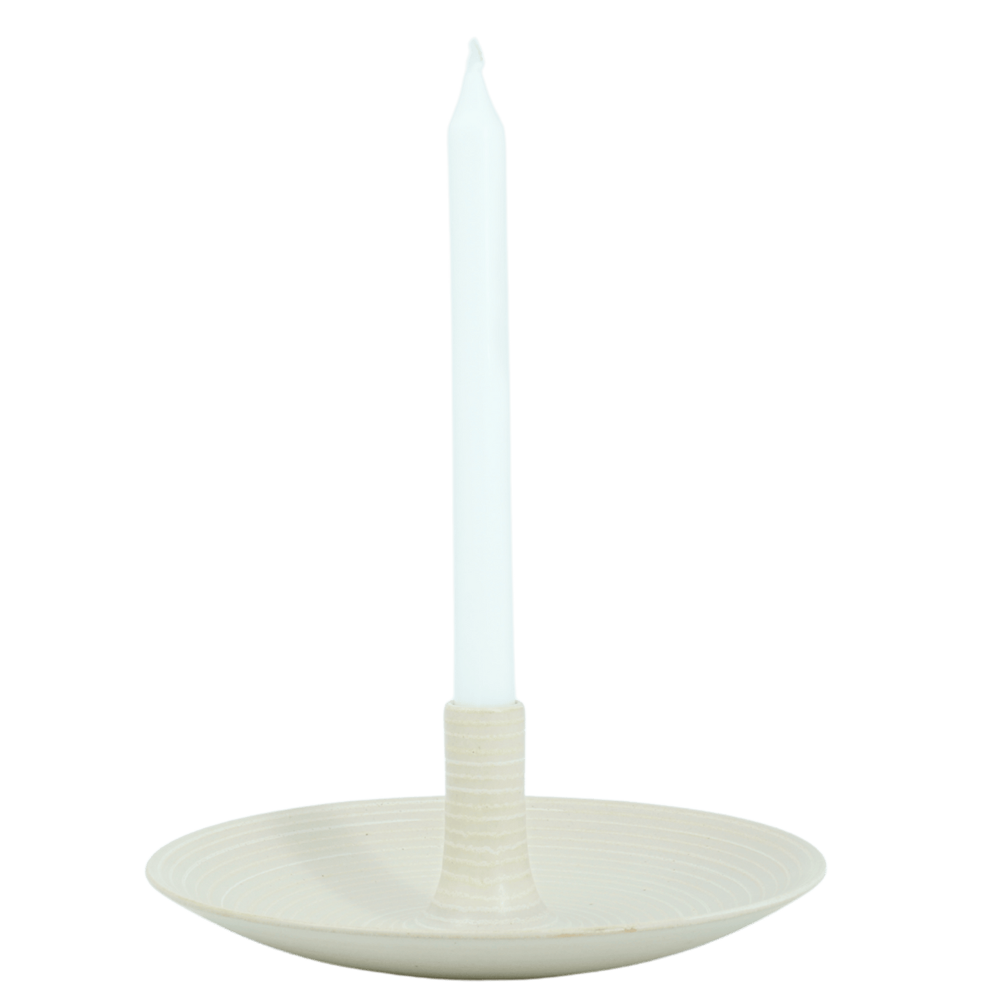 Handdrejat ljusfat i 25 cm med handmålade linjer i hampaglasyr – svenskt hantverk från Paradisverkstaden på Öland.