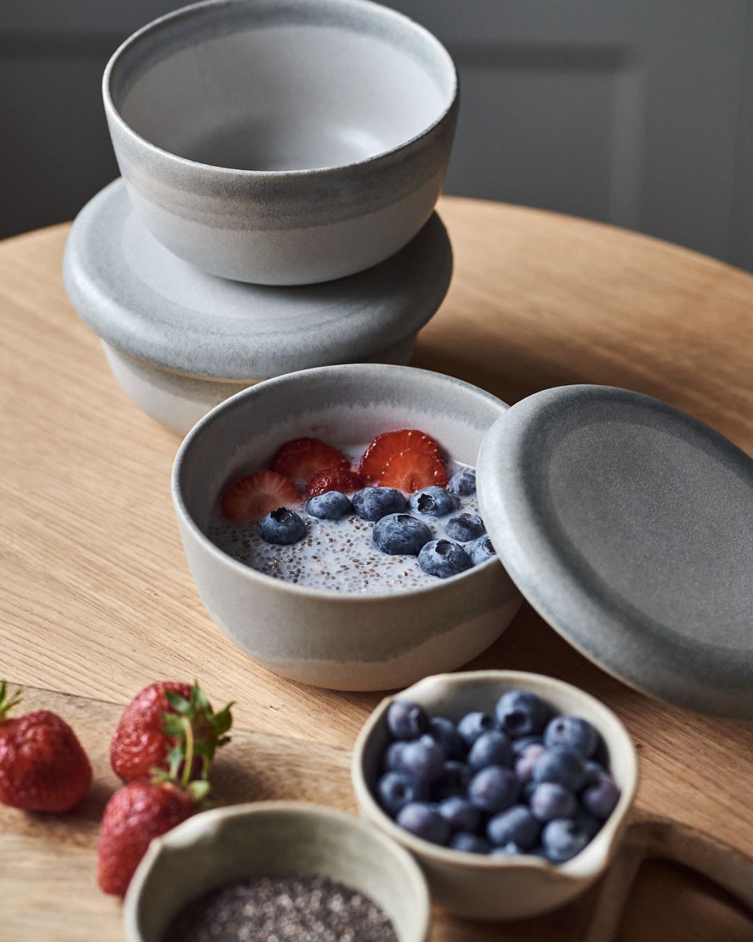 Att fritt använda delarna som man vill. Dricka soppa ur en mugg, kaffe ur glas, små frukter på ett fat. Smoothie ur en kaffekopp. Spara & förvara med och utan lock. Jag blandar alla former och färger på mitt frukostbord.” - Maja Lindahl