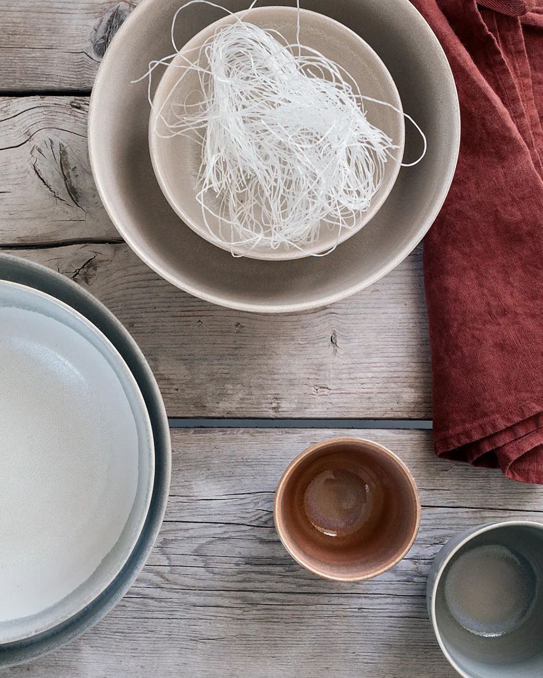 I kollektionen finns spår av ett japanskt designtänkande, med en återhållsam och stilla estetik. Det vackra träder fram i det enkla.