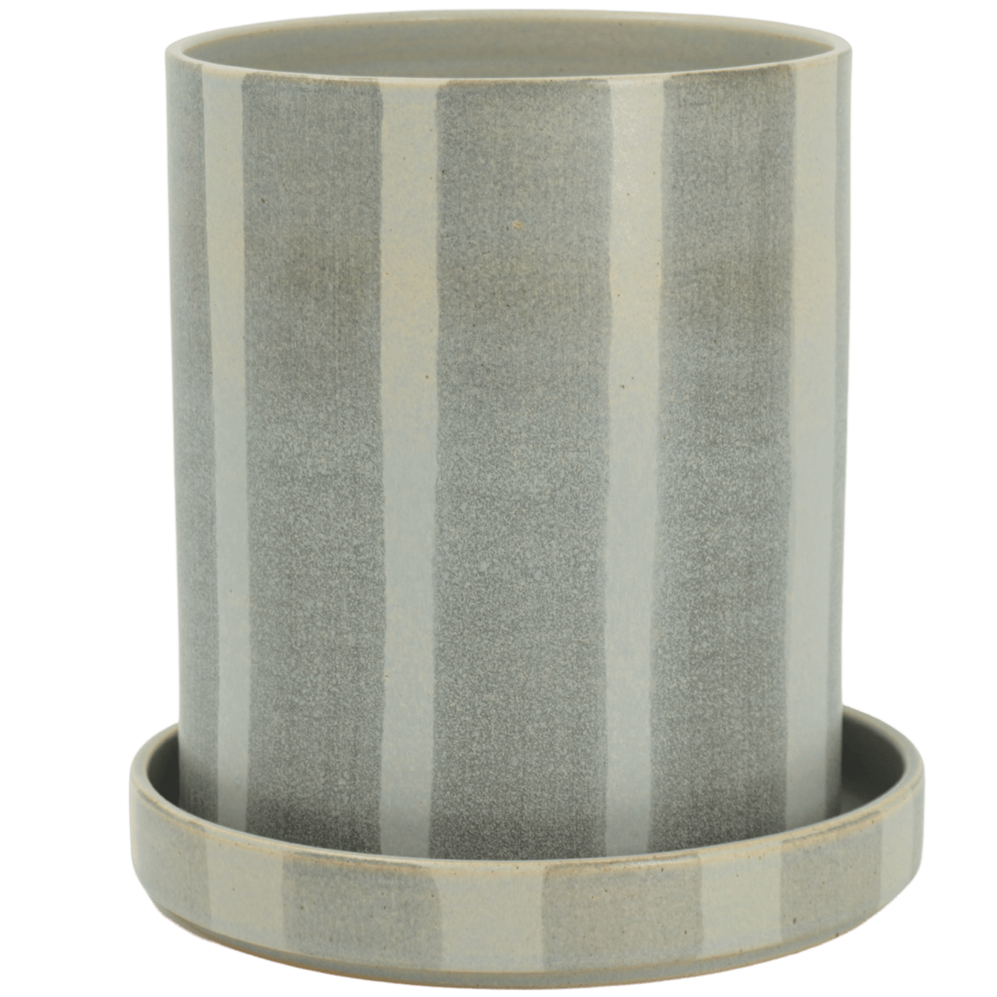 Krukan levereras med ett matchande fat som skyddar underlaget och gör växtskötseln enklare. Serien är både praktisk och dekorativ – lika fin i köksfönstret med färska örter som på terrassen med ett medelhavsträd.