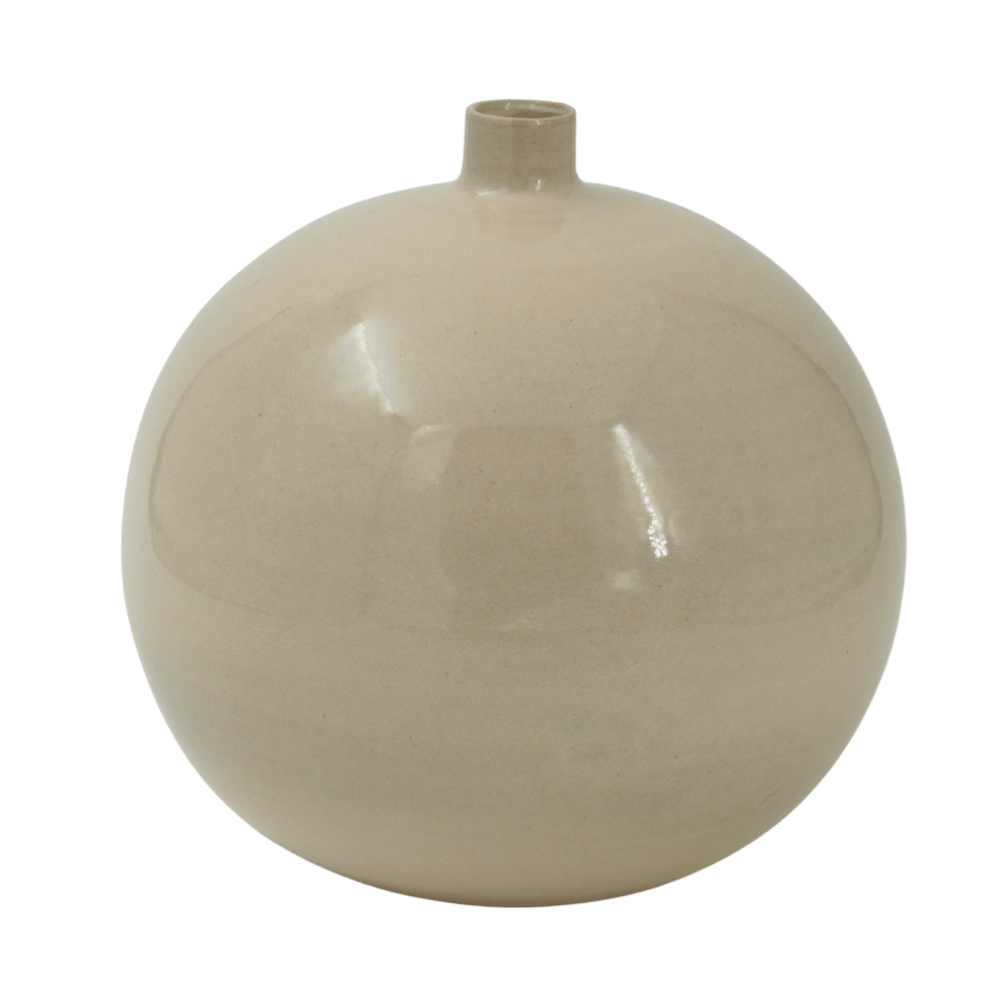Klotvas 24 cm är en handgjord keramikvas formgiven av Hannah Paradis och inspirerad av 1950-talets stengodsminiatyrer. I denna större skala blir klotformen ett tydligt statement – en skulptur i rummet lika mycket som en funktionell vas.